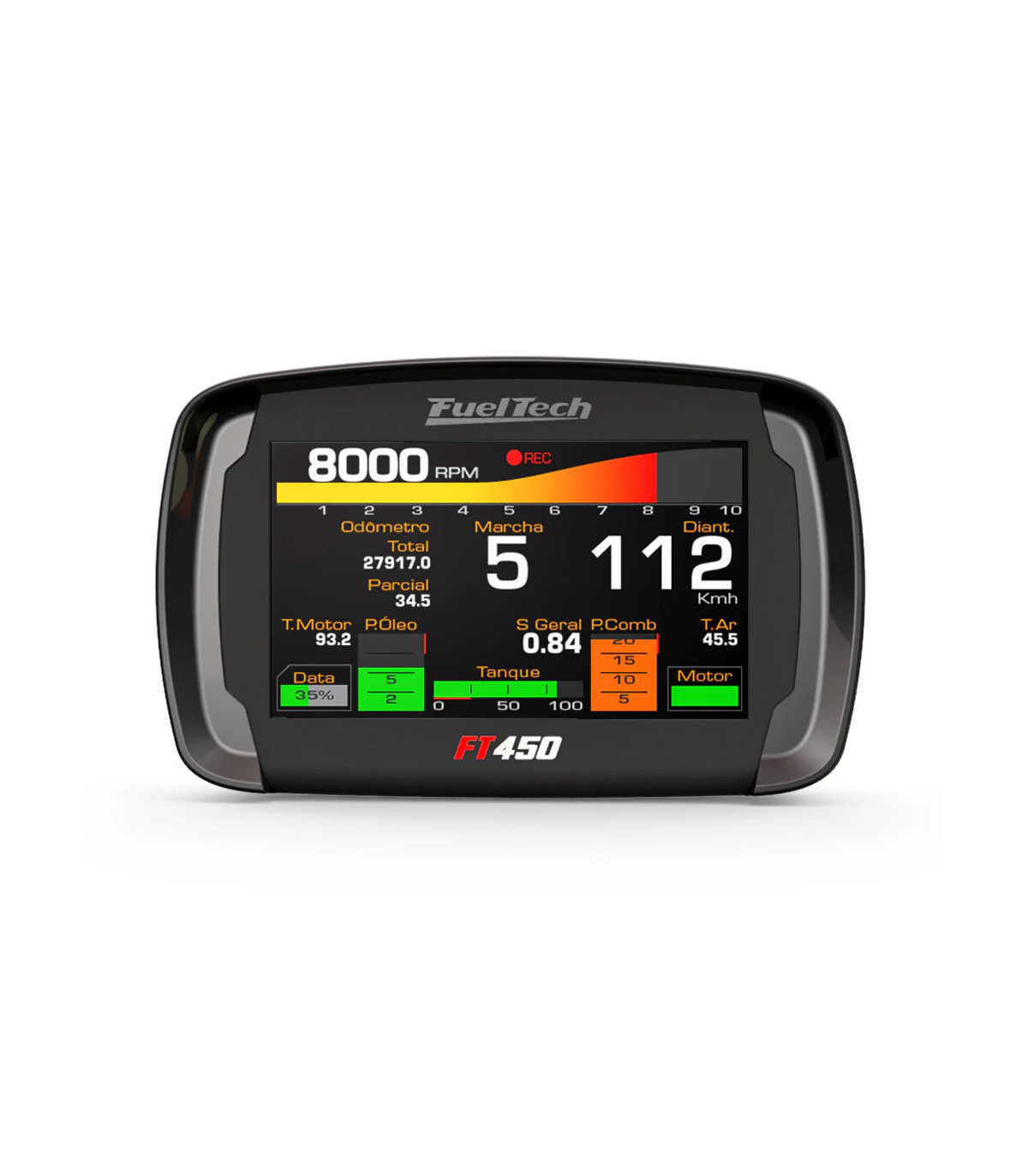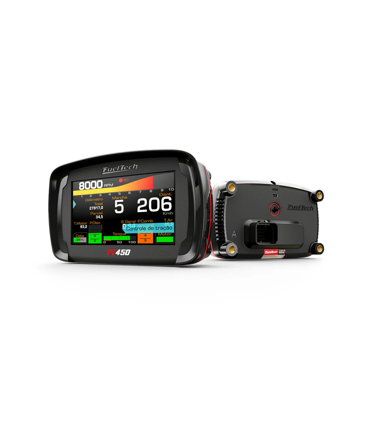 FuelTech's FT450 is the perfect ECU for projects with limited input and output channel needs, offering 7 configurable inputs and 10 outputs. This cost-effective aftermarket ECU is equipped with the same FTManager software and many of the same features offered in the FT550, FT550LITE, and FT600 including sequential injection and ignition, O2 closed loop, active traction control, integrated boost controller, internal datalogger, progressive and PRO-Nitrous controls, odometers, drag racing features and more! The touchscreen display offers an integrated dash display, eliminating the need for additional gauges, has 4 programmable screens, and a customizable splash screen. The IP67 rating makes it perfect for off-road and marine applications such as PWCs / Jet Skis.