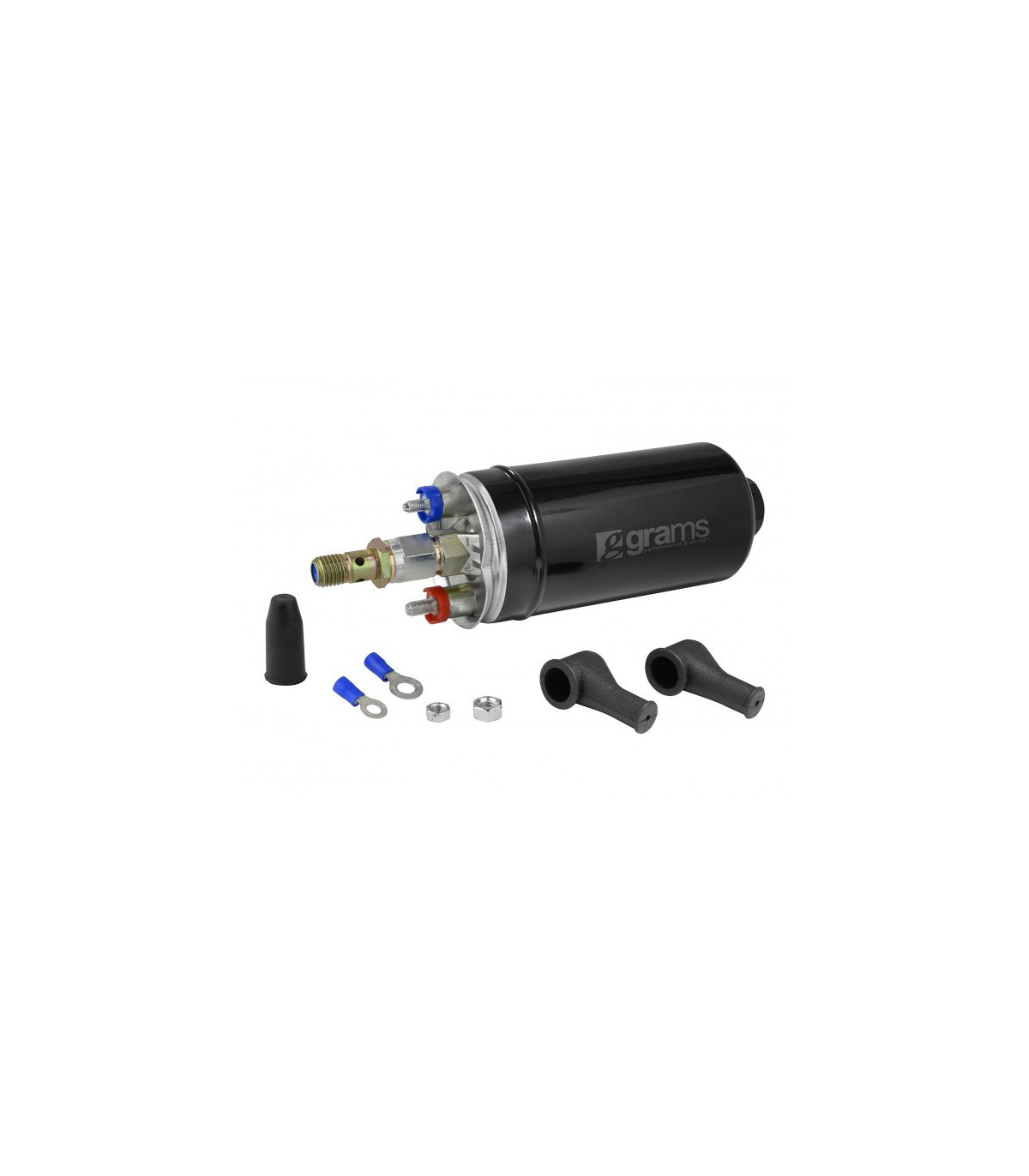 Grams Performance High-Flow in-tank fuel pumps are designed for both naturally aspirated and forced induction EFI vehicles. These pumps are capable of pressures over 100psi and provide the high volumes needed for your most demanding applications. All the Grams Performance pumps are available in the standard 320lph, the compact 265lph, and the inline 355lph variations. Our 265lph and 320lph in-tank units come with the required pigtail, fuel line, clamps, and O-rings, as well as two filter socks to fit a wide variety of applications. Our 355lph inline fuel pump comes with electrical terminals, boot covers, and outlet adapter. Universal Replacement for vehicles requiring more fuel In-tank and inline applications available.