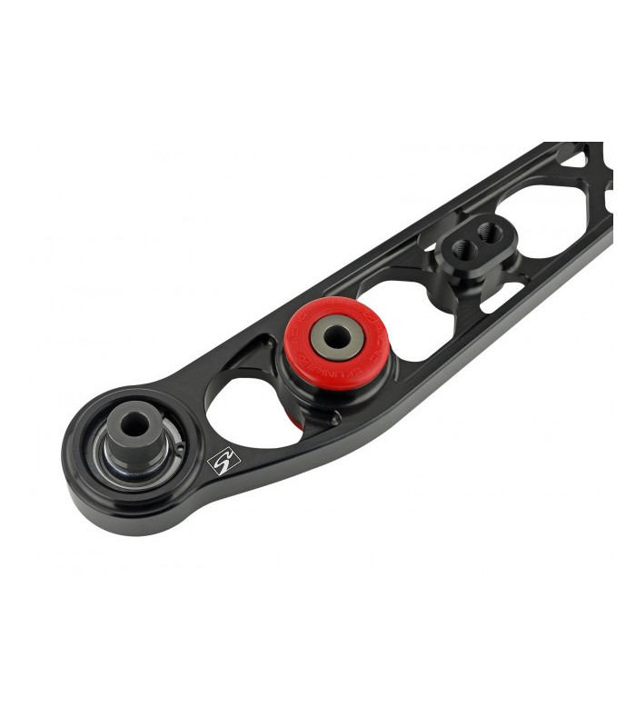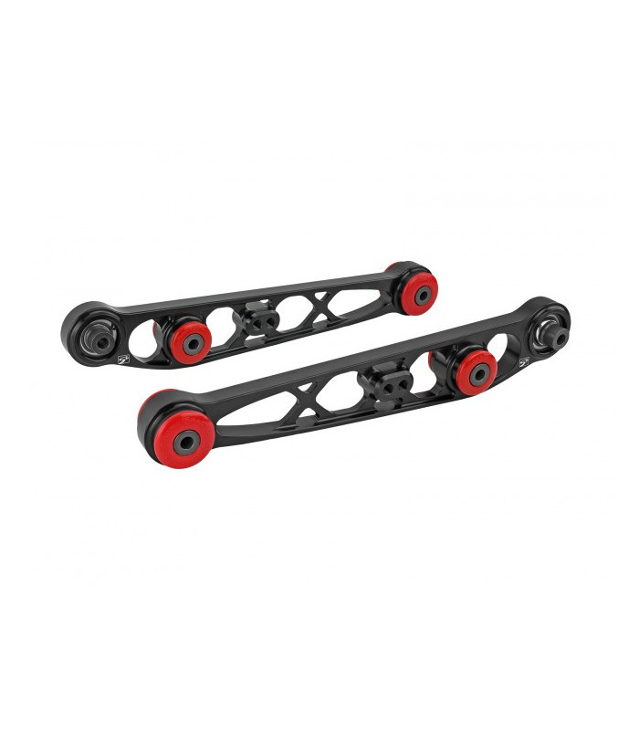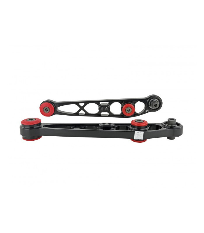 For hardcore race level handling, we have also added the option to replace the sub frame side elastomeric bushing with a high load steel spherical bushing for a no-nonsense track car. The bushing change can be done in minutes with basic tools. Properly designed suspension components must be strong and functional first and aesthetically pleasing second. Skunk2’s Rear Lower Control Arms are both. For maximum suspension performance, Skunk2 Rear Lower Control Arms are best complemented with Skunk2 Rear Camber Kits, Lower Arm Bars, and Strut Tower Bars.