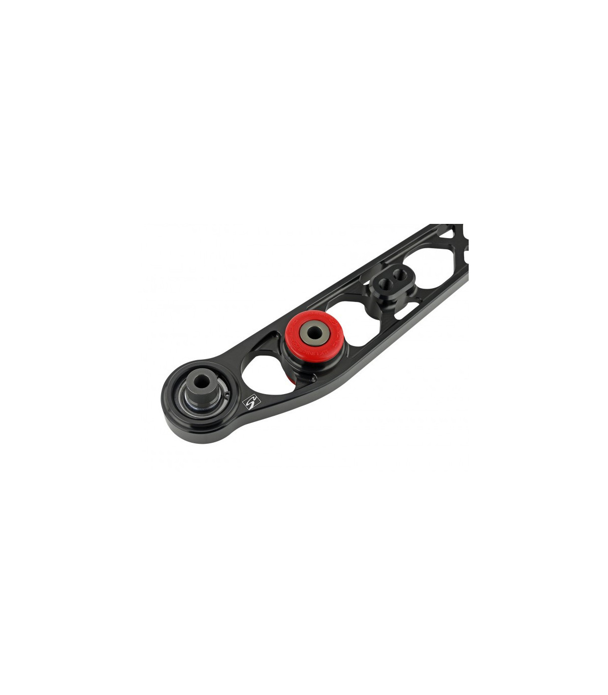 Accurate suspension geometry is maintained under the most aggressive driving conditions using high load steel spherical bearings on the trailing arm side and tuned durometer elastomeric bushings for the sub frame side of the LCA. Delrin bushings are utilized at the shock mounting position for their low friction and minimal deflection for unparalleled dynamic shock control. Using this select combination of bushings allows the most comfort and control under any driving conditions.