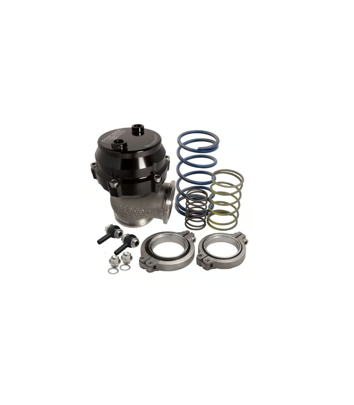 Precision Turbo and Engine's high-quality yet economical GEN2 PW46 46mm external wastegate is perfect for the automotive enthusiast looking to get the most from their turbocharged car, truck or any other vehicle. The 46mm Precision Turbo and Engine GEN2 PW46 external wastegate is fully adjustable and features the following: High grade, high temperature stainless steel and billet aluminum components for the best in strength, style and fucntionality at an affordable price A 347 stainless investment cast valve body to provide consistent performance without fatigue or failure while also allowing for accurate boost control An internal Nickel Chromium Alloy Valve 5 different 17-7 precipitation hardened springs for further adjustment of boost levels Standard clamp-style flange configuration for easy mounting A satin black anodized finish with 6061 aluminum billet cap with two ports to support various installation configurations All clamps necessary for installation The PTE GEN2 PW46 external wastegate is designed to be a direct fit replacement for other units on the market and it compatible with most aftermarket manual or electronic boost controllers for ease of use. As an added bonus, all 46mm Precision Turbo GEN2 PW46 wastegates are warranted to be free from manufacturers defect for a period of 12 months or 12,000 miles!
